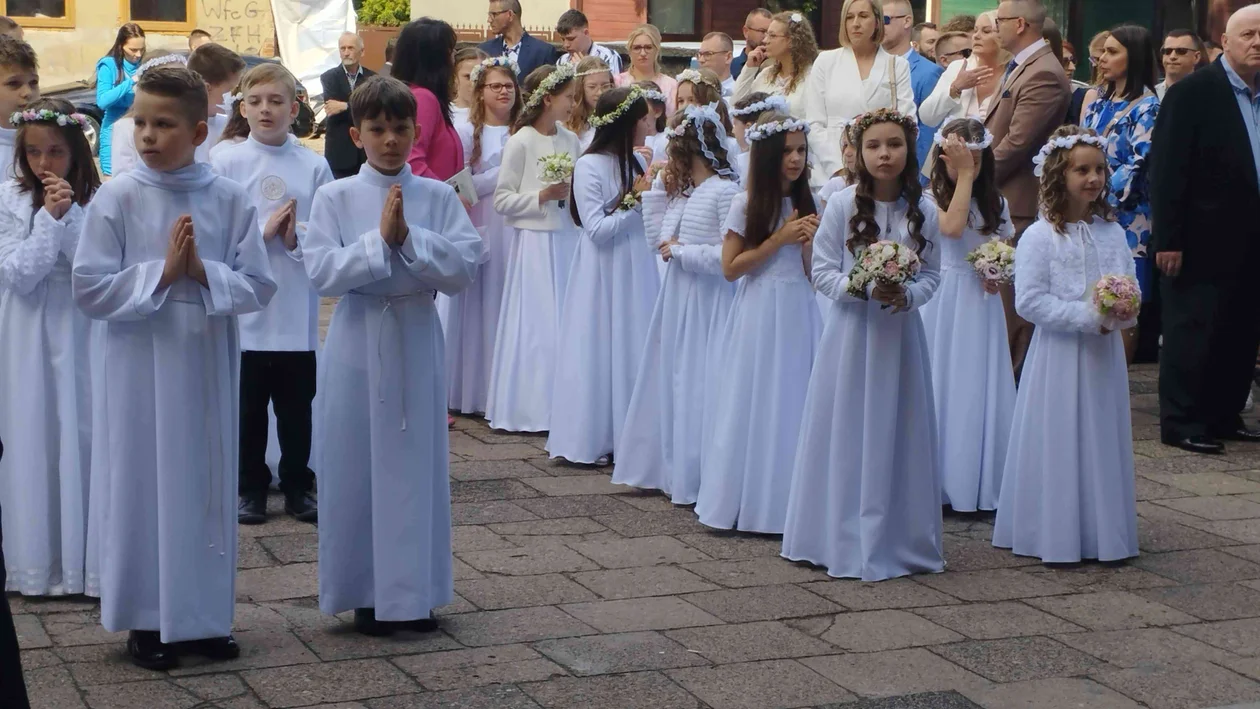 parafii Matki Boskiej Dobrej Rady w Zgierzu zebrał się spory tłum dzieci i członków ich rodzin. Elegancko ubrane mamy przygładzały włosy córkom, zaś tatusiowie zastanawiali się, czy na pewno wszystko jest dopięte na ostatni guzik. Dziewczynki miały na sobie najczęściej długie, białe sukienki i wianki z żywych kwiatów na głowach. Wśród chłopców dominowały garnitury, jednak kilku z nich postanowiło uczcić ten dzień w albach.