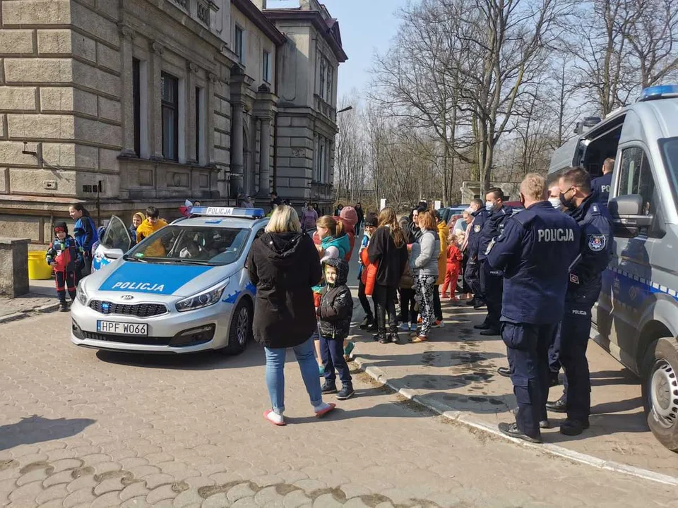 Policjanci ze Zgierza podarowali małym uchodźcom z Ukrainy pluszaki