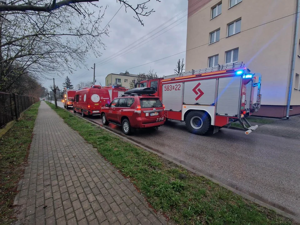 Zostało ewakuowanych 38 osób. Na miejscu pracują 4 zastępy PSP oraz 1 OSP.