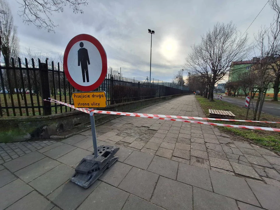 Piesi mogą kierować się na chodnik tylko od strony Szkoły Podstawowej nr 11.