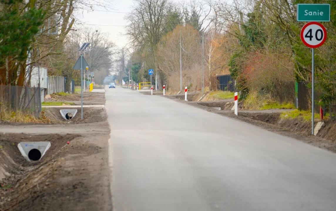 Powiat Zgierski zakończył przebudowę ponad 1,2 km drogi w Saniach. Nowa nawierzchnia pojawiła sie na odcinku od skrzyżowania z DK72 aż po ul. Zgodną.