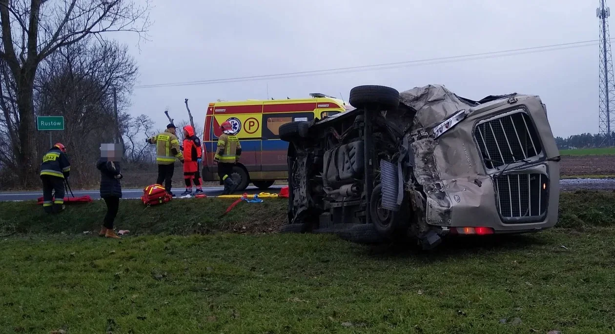 Do zdarzenia doszło w czwartek, 24 listopada ok. godz. 13:30, na wysokości miejscowości Rustów/Konary (gmina Krzyżanów, powiat kutnowski). Zderzyły się ze sobą: bus i osobowy mercedes.