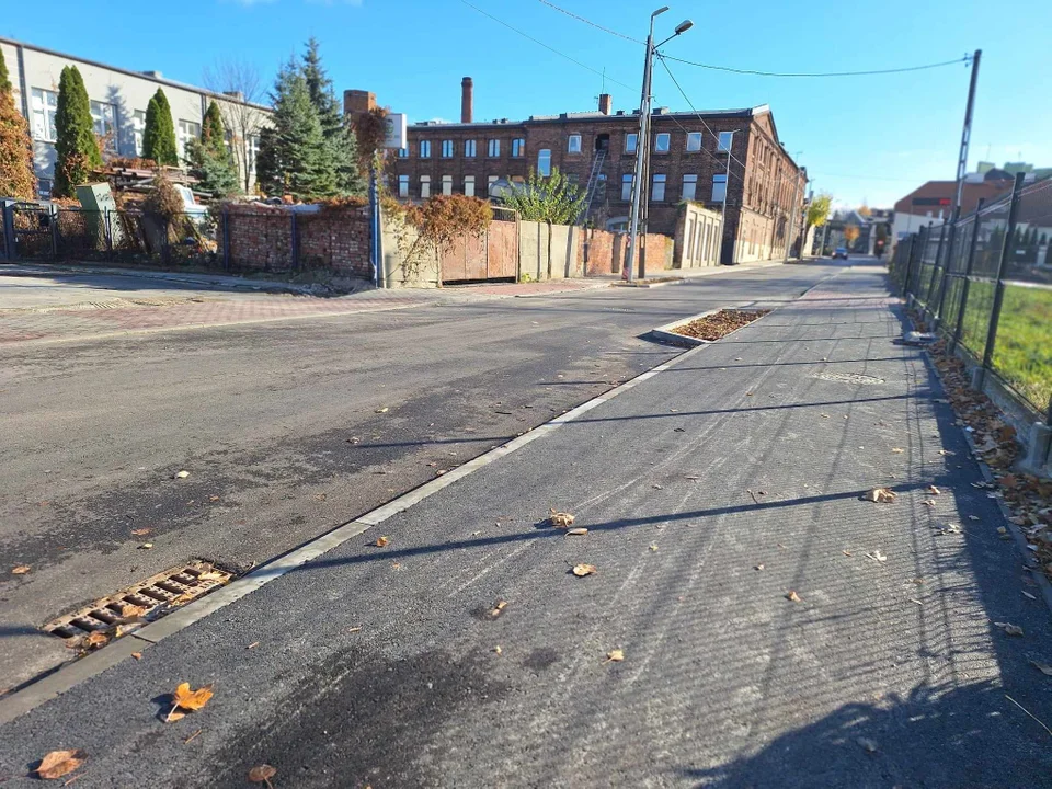 Po jednej stronie ulicy mamy chodnik, po drugiej ciąg pieszo-rowerowy (jeszcze bez oznaczeń) oraz nową nawierzchnię asfaltową. Droga jest połączona z ulicą Dąbrowskiego, na której również wrócił ruch samochodów.