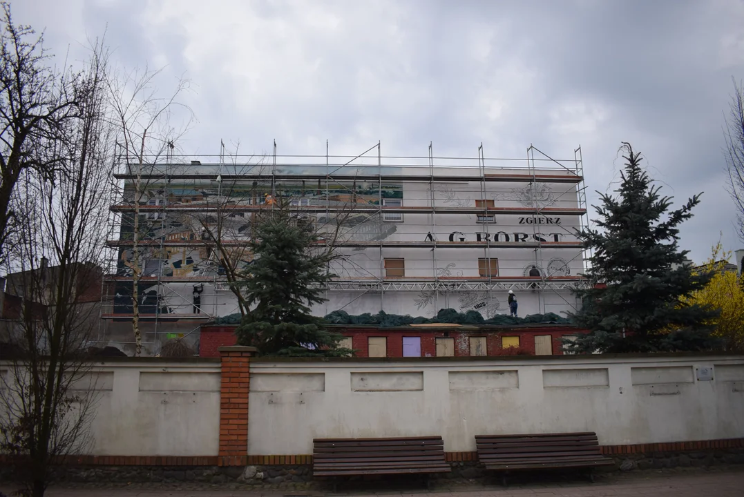 Na ścianie zobaczymy mural przedstawiający m.in. dawną fabrykę Borsta i inne ślady przemysłu w Zgierzu sprzed ponad 100 lat. Prace nad muralem powinny zakończyć się na początku kwietnia, choć zależne to będzie od warunków pogodowych.