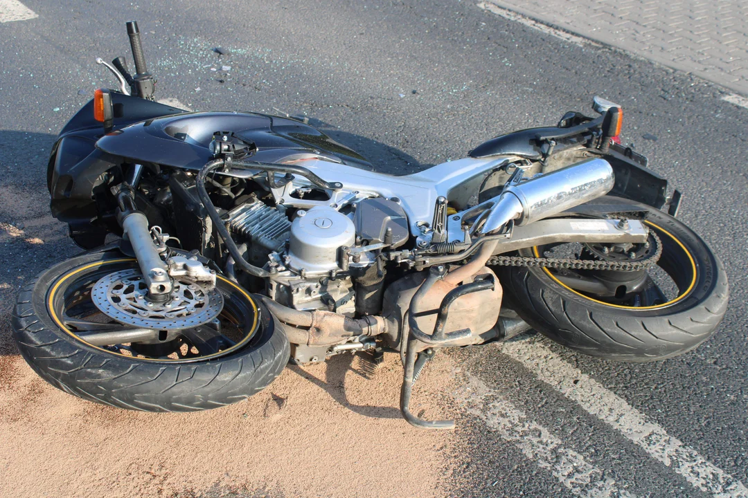 Na drodze krajowej 71, 40-letni kierowca samochodu audi podczas wykonywania manewru skrętu w lewo nie ustąpił pierwszeństwa motocykliście. 50-letni kierowca motocykla yamaha został przewieziony do szpitala z podejrzeniem złamania prawego stawu barkowego. Obaj kierowcy byli trzeźwi.