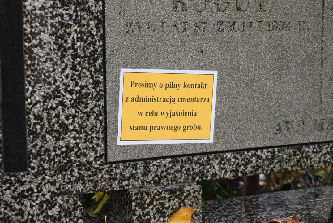 Prosimy o pilny kontakt z administracją cmentarza, w celu wyjaśnienia stanu prawnego grobu.