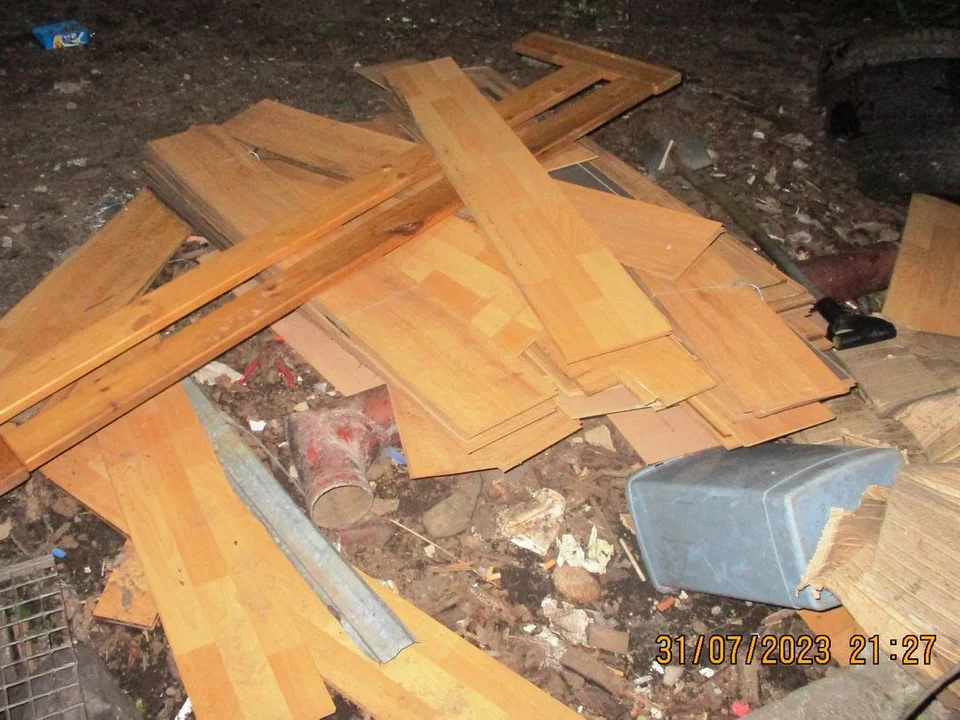 Funkcjonariusze przeprowadzili kontrolę, podczas której odkryli, że mężczyzna palił drewnianymi panelami i laminowanym drewnem. Grozi za to grzywna do 1000 zł.
