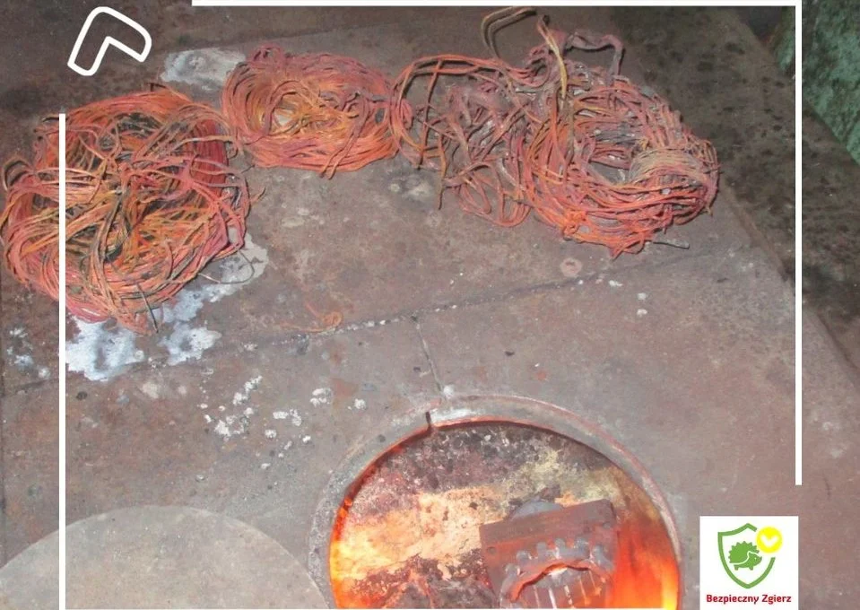 Strażnicy miejscy przyjechali do zgłoszenia na ulicę Długą w Zgierzu. Funkcjonariusze przeprowadzili kontrolę, podczas której odkryli, że mężczyzna palił w piecu kablami elektrycznymi. Wyciągnęli z paleniska kilka grubych zwojów kabli.