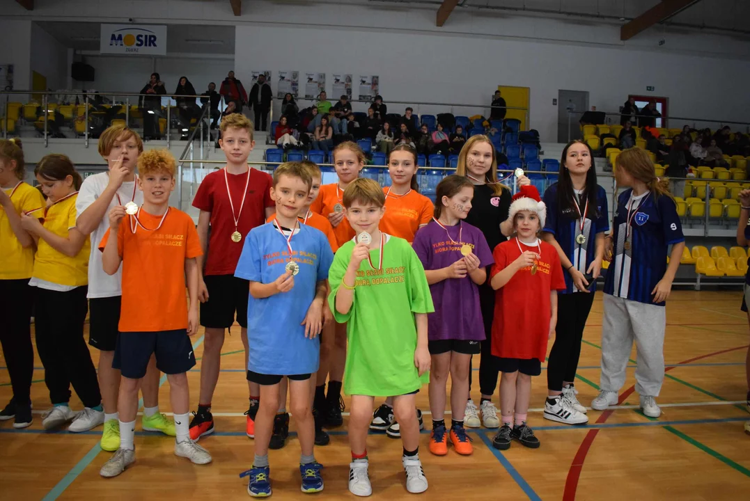 Waga, sztanga, zawodnicy i sędziowie. Na wyznaczonym fragmencie hali dzieci i młodzież podnosili ciężary. Z każdej szkoły przyjechała reprezentacja kilkuosobowa, a wagę ciężaru dostosowano do wagi zawodników.