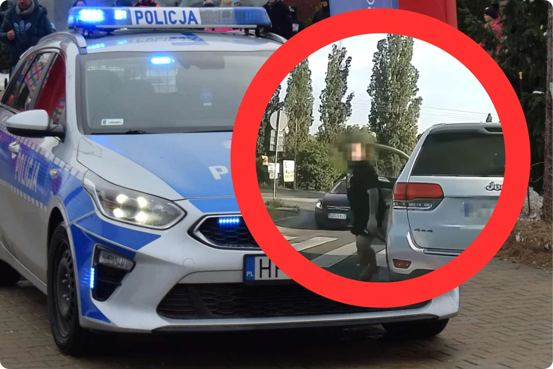 Po chwili na nagraniu widać jak SUV zajeżdża drogę autorowi nagrania, wysiada z auta i podchodzi do samochodu.