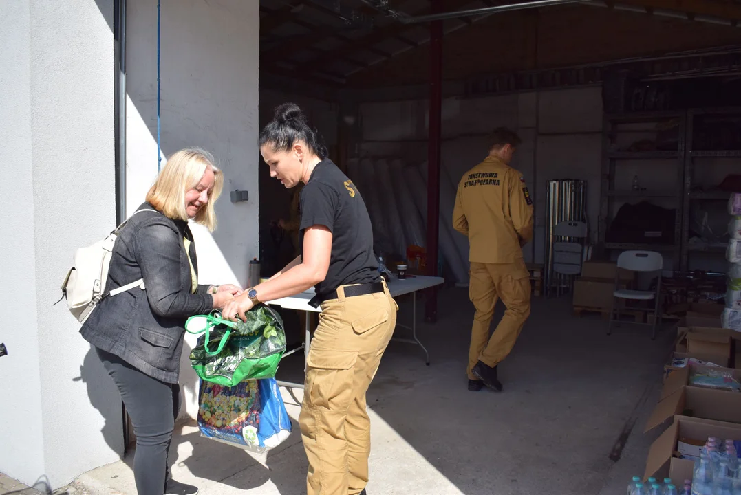 W Zgierzu podobnie jak w całej Polsce trwa akcja pomocy dla regionu dotkniętego powodzią. Każdy daje tyle ile może, a strażacy segregują produkty.