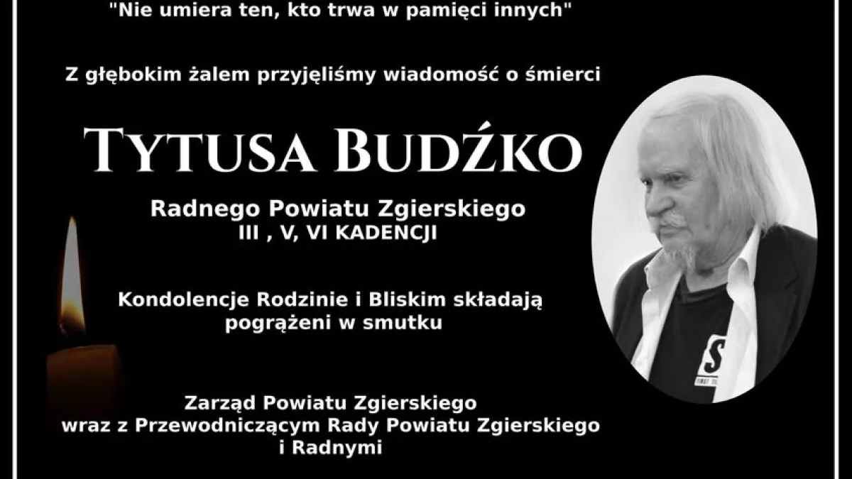 Na oficjalnym profilu Starostwa Powiatu Zgierskiego pojawił się post z informacją o śmierci Tytusa Budźko. Był członkiem Rady Powiatu Zgierskiego w latach 2006-2010 oraz 2014-2024, miał 84 lata.