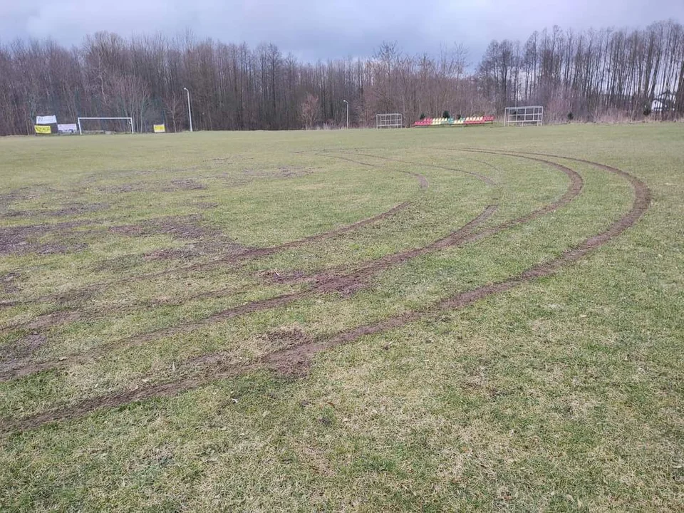 Boisko nie jest ogrodzone. Amatorzy driftu nie pierwszy raz dewastują to miejsce.